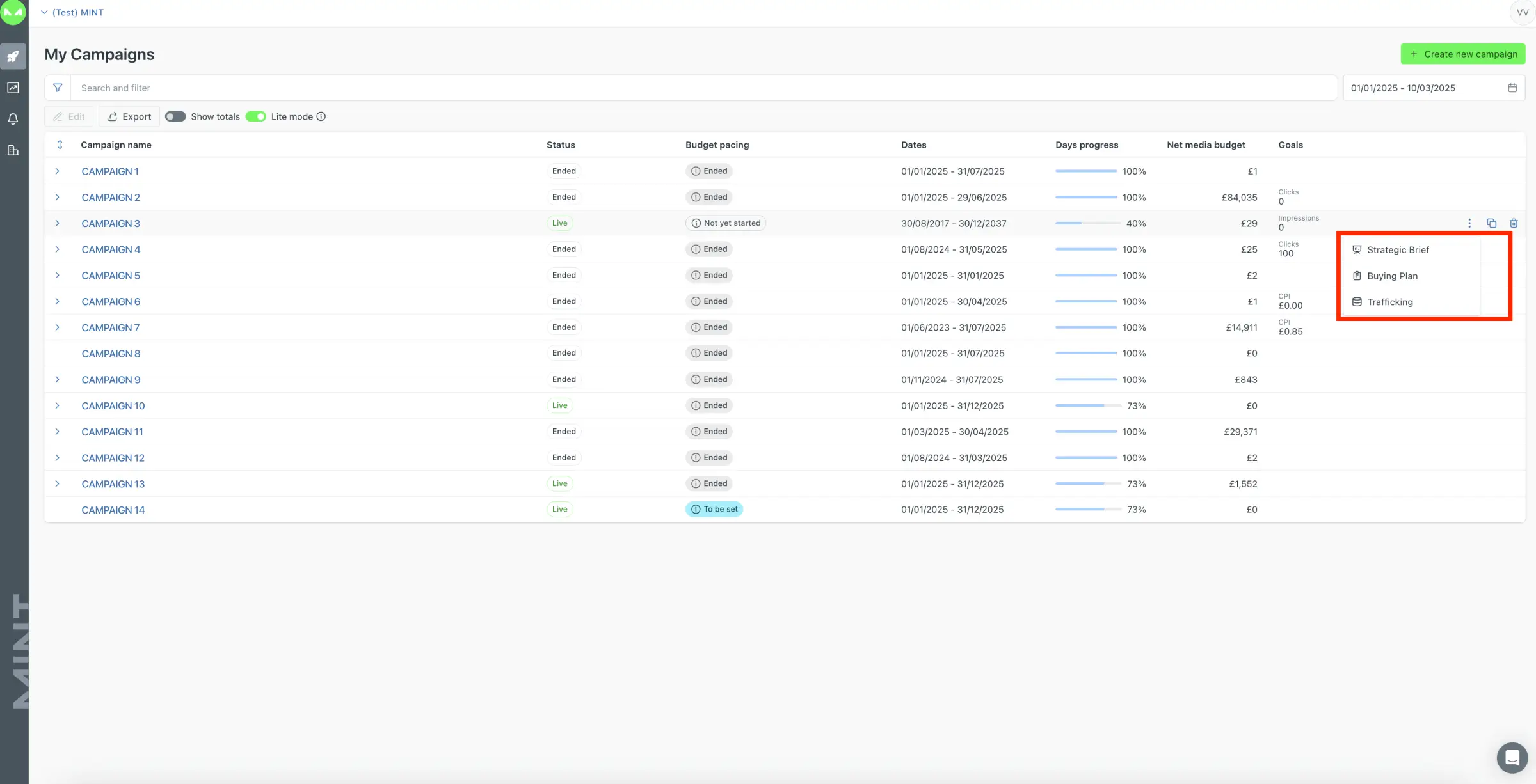 All you need to do is add the overall campaign budget and choose the KPI, then MINT will automatically allocate it to the configured channels and platforms. This eliminates guesswork and saves time because there is no more need to allocate manually.